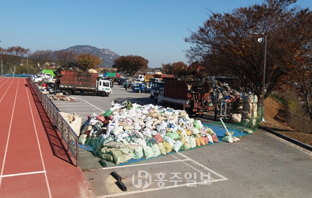 홍성군과 홍성군새마을회가 주관하고 한국환경공단, 홍성군재활용협회가 후원한 이번 행사는 읍·면별 집중수거기간을 갖고 16일 본 행사장에 수집한 품목을 모아 분리작업을 통해 자원을 발굴하는 방식으로 진행됐다.