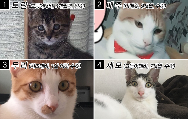 토란이는 어미고양이가 떨어뜨리고 간 바람에 혼자 되었다 구조되었습니다. 애교 덩어리인데다 사교성도 뛰어납니다. 눈이 장난칠 때 약간 안으로 모이긴 하지만 건강이나 활동에 전혀 지장이 없다고 합니다. 에방접종도 완료된 완벽한 실내묘입니다. 다묘가정으로 갔음 좋겠습니다.