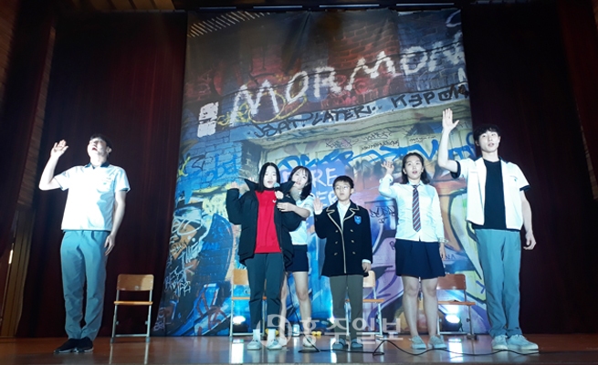 내포중학교(교장 조국행)는 학생중심 자치활동 중심학교 운영 프로그램의 일환으로 지난 17일 학교 강당에서 학교폭력 예방 뮤지컬 공연을 관람하는 시간을 제공했다.