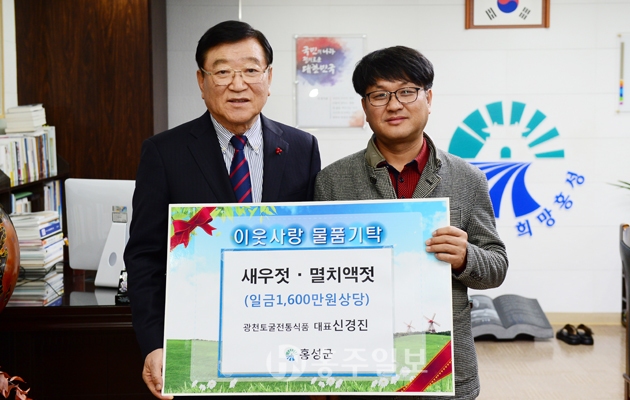 신 대표는 매년 어려운 이웃을 위해 김장김치를 담그는 홍성군새마을부녀회와 적십자봉사단을 비롯해 사회복지시설에 새우젓과 액젓을 후원해 오고 있다.