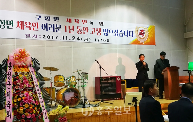 【구항】 구항면체육회(체육회장 홍순형)는 지난 24일 구항면 주민자치센터 다목적홀에서 김석환 군수를 비롯해 체육회 임원, 역대 체육회장, 체육진흥회장, 기관단체장 등 150여명이 참석한 가운데 ‘2017 구항면 체육인의 밤’ 행사를 열었다.