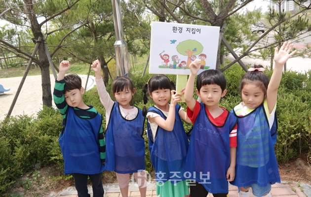 환경지킴이는 매월 2회 반별로 내포유치원의 모든 유아들이 함께 참여하고 있다.