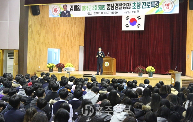 홍주고등학교(교장 구철모)는 지난 3일 충남지방경찰청장 김재원 치안감을 초청, 1·2학년을 대상으로 진로 특강을 실시했다.<사진>