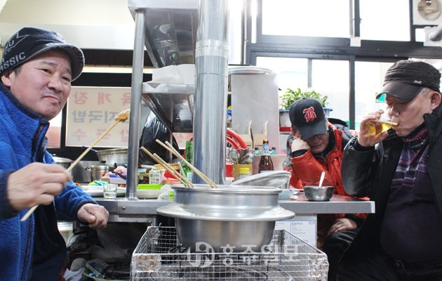 오전 11시가 조금 안 되어 박 씨가 대동집으로 발길을 향한다. 첫 손님이 이미 선지국에 소주를 마시고 있다. 박 씨는 오래된 나무 의자에 엉덩이를 들이밀고 난로 옆에 바짝 붙어 앉는다.