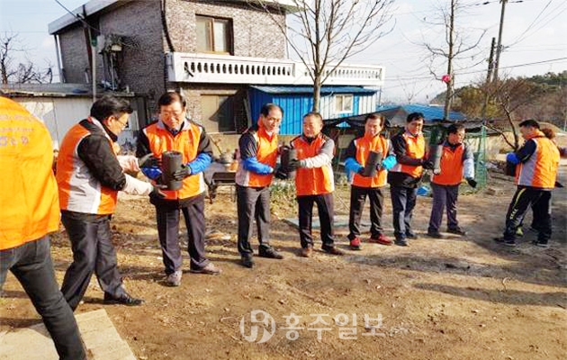 【홍성】 NH농협은행 충남영업본부(본부장 원종찬)는 지난 18일 어려운 이웃을 위해 홍성읍 소향리에서 ‘사랑의 연탄나눔봉사 활동을 펼쳤다.<사진>