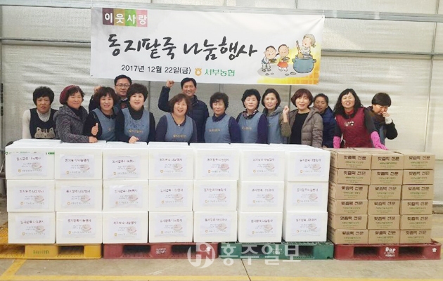 서부농업협동조합(조합장 표경덕)은 지난 22일 동지날을 맞아 농가주부모임(회장 손명속) 회원들과 함께 서부농협육묘장에서 팥죽을 만들어 관내 40개 경로당과 마을회관에 전달하며 어르신들의 새해 건강과 이웃사랑의 정을 나눴다. 저작권자 © 홍주일보 무단전재 및 재배포 금지 한기원 기자 다른기사 보기 페이스북 카카오톡 URL복사 기사공유하기