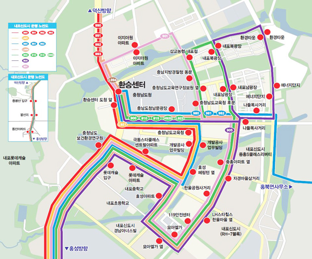 내포신도시 내 아파트 및 인구증가에 따라 운행경로를 늘리고, 운행횟수를 증편하게 되며, 홍성군 전체 지선과 관련 홍성역과의 교통연계 및 운행 효율성 강화, 각 읍·면별 운행 횟수 및 노선 등을 소폭 조정했다. 이번 개편의 핵심인 내포신도시 구간은 1일 운행 차량이 종전 3대에서 4대로 증차됐으며, 운행횟수도 총 83회에서 97회 늘어 14회가 증가했다.