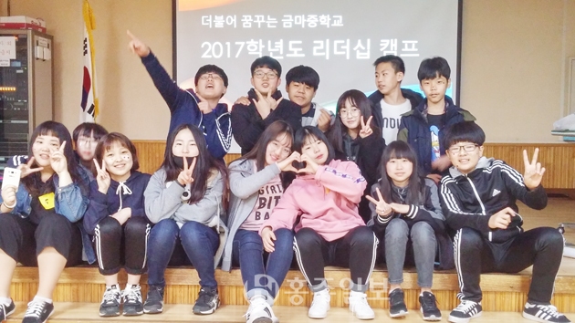 학생자치활동 일환으로 2017 리더십캠프에 참여한 금마중학생들 모습.