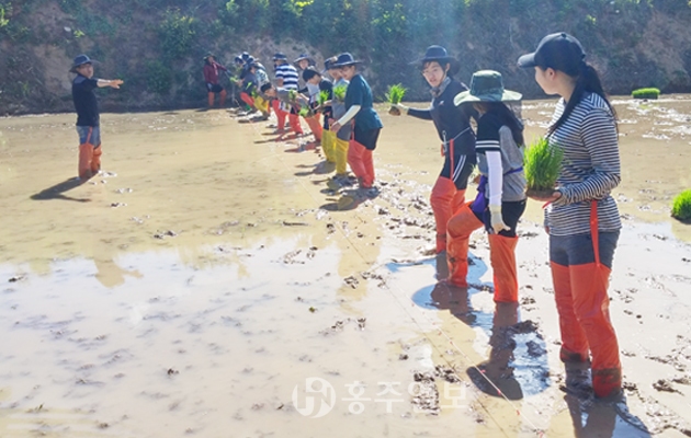 노작교육의 일환으로 지난 5월에 실시된 모내기 모습.