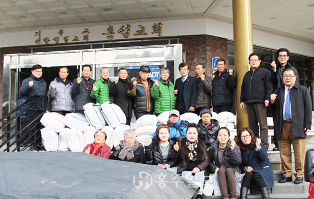 이 날 교회는 어려운 주민들을 추천한 홍성읍내 38개리 이장들을 초청, 점심 식사를 대접하고 위로하는 순서를 가졌다.