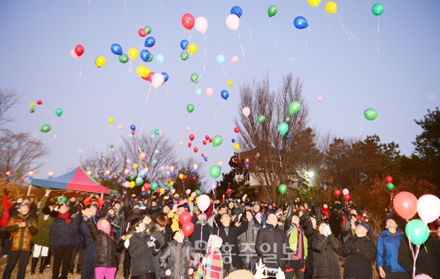 홍성군은 2018년 1월 1일, 홍주천년의 해 첫날 이른 아침 백월산에서 일출맞이 행사를 했다. 이 날 영신고천대제, 홍주천년 선포식, 소원 풍성 날리기, 천년 북 치기, 일출맞이 순으로 진행됐는데, 김석환 군수는 “천년의 역사가 살아 숨 쉬는 홍성의 옛 지명 홍주를 널리 알리고 올해는 홍성군의 해가 될 수 있도록 기념사업 준비에도 만전을 다하겠다”고 말했다. 저작권자 © 홍주일보 무단전재 및 재배포 금지 허성수 기자 다른기사 보기 페이스북 카카오톡 URL복사 기사공유하기