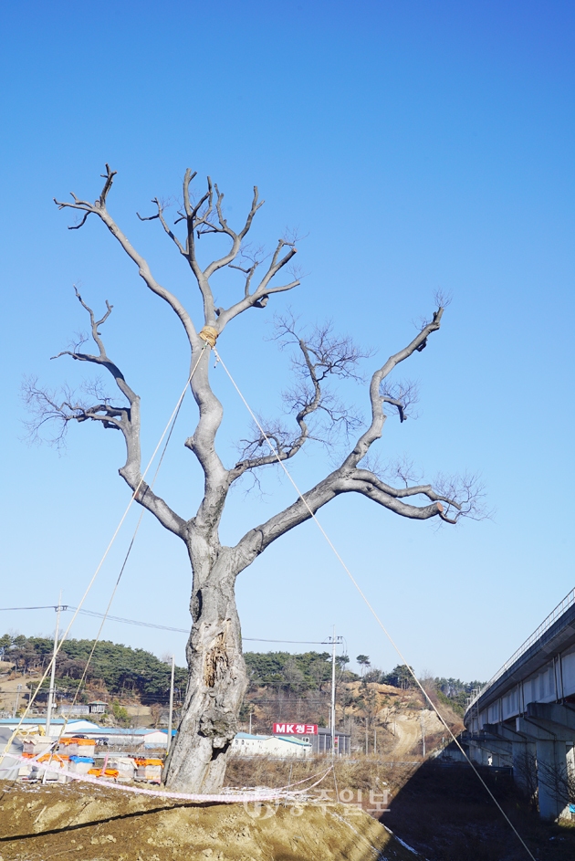 홍성읍 대교리 55-1번지의 수령이 300여년으로 추정되는 팽나무는 1982년 10월 보호수(지정번호 8-12-1-2-284)로 수고는 15~16m, 나무둘레는 2.3~2.5m로 추정되고 있다. 홍성읍 대교 3리는 가좌동 또는 종쟁이마을로 불리며, 옛 말 무덤 근처의 장항선 철도 아래로 국도 21호선 주변에 위치하고 있다. 군에서 보호수의 가지 등을 정돈하고 버팀줄을 하는 등 보호수 주변은 정리정돈을 말끔하게 했으나 안내판 등은 아직 설치돼 있지 않다.