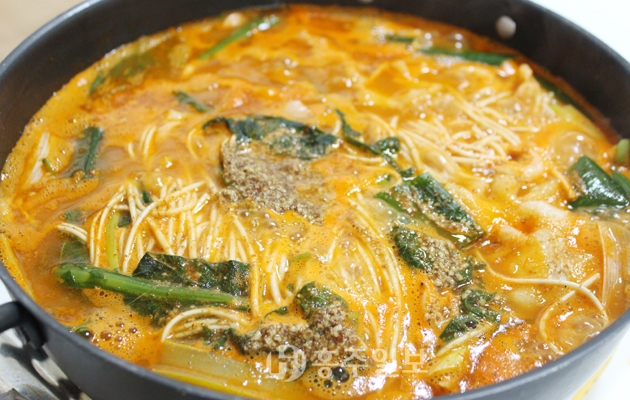 고소한 들깨가루와 야채 등이 들어간 만수무강의 어죽 .