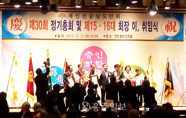 재인천충남도민회가 지난달 27일 인천 송도 센트럴파크호텔에서 정기총회 및 제15·16대 회장 이·취임식을 거행했다.