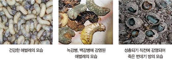 사람에게 나타나는 질병은 사람의 생명이 길어서 치료과정에서 투여되는 예방약도 있고 다양한 처방이 있을 수 있지만 곤충은 생애 주기가 매우 짧아서 한 번 질병에 감염되면 삽시간에 퍼져나가는 것이 특징이다.