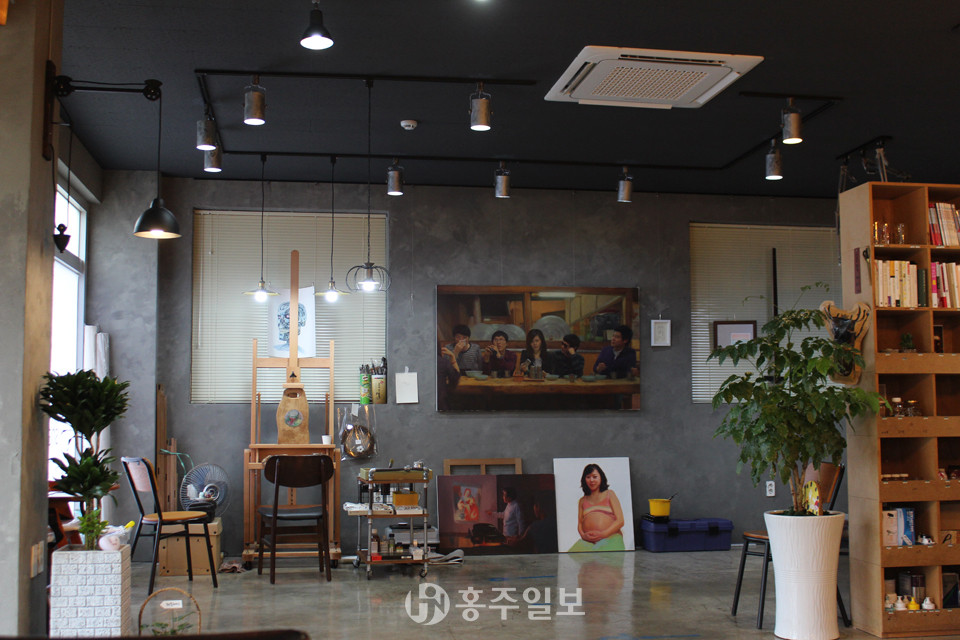 카페 한 편에는 남편이 작업할 수 있도록 이젤과 물감, 남편의 작품들을 걸어놓았다. 큰 테이블을 놓고 미술 작업을 하는 사람들이 와서 커피 한 잔 마시며 작업할 수 있는 공간으로도 내주고 싶다. 물론 가르칠 생각은 없다. 아니면 전시회를 열고 싶은 사람에게 대관도 해줄 생각이다. 그저 이 공간에서 작업에 대한 이런저런 이야기를 나누며 공감하고 싶은 것이 남편과 나의 꿈이다.