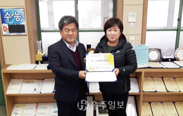 홍성여자고등학교(교장 유병대) 양궁부 박재희 학생이 500만 원을 학교발전기금으로 기탁했다.