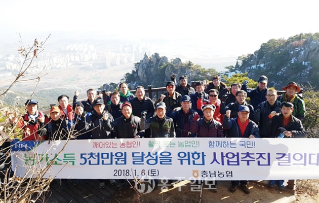 농협 충남지역본부(본부장 조소행)는 6일 간부직원 40여명이 참여한 가운데 용봉산을 산행하며 ‘농가소득 5000만 원 달성과 1등 충남농협 만들기’ 위한 사업추진 결의대회를 개최했다. 이번 결의를 통해 신뢰받는 농협구현을 다짐했다. 저작권자 © 홍주일보 무단전재 및 재배포 금지 홍주일보 다른기사 보기 페이스북 카카오톡 URL복사 기사공유하기