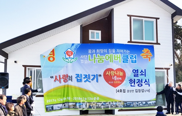 (사)나눔에버클럽은 지난 13일 결성면 형산리 김장섭(37) 씨 가족들이 거주할 사랑의 집이 완공돼 지난 13일 ‘사랑의집열쇠헌정식’을 가졌다.
