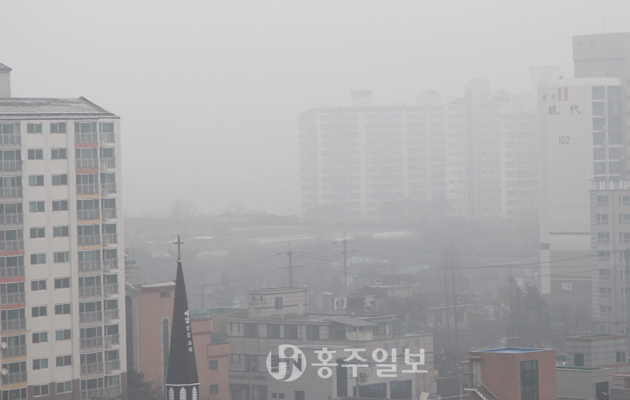 미세먼지가 심각하다. 지난 17일 홍성지역은 하루 종일 짙은 미세먼지로 뒤덮여 마치 낡은 비닐을 통해 간신히 볼 수 있을 정도의 흐릿한 풍경을 연출했다. 이 날 환경부에 따르면 미세먼지 수준이 서울 121, 경기 105, 인천 86으로 수도권지역은 ‘나쁨’ 상태였고, 그 뒤를 이은 충남이 70의 ‘보통’ 수준이었다. 강원 59, 충북 54를 기록하며 충남의 뒤를 이었다. 전국에서 가장 낮은 곳은 울산과 경남으로 각기 10과 19 ‘좋음’으로 나타났다.