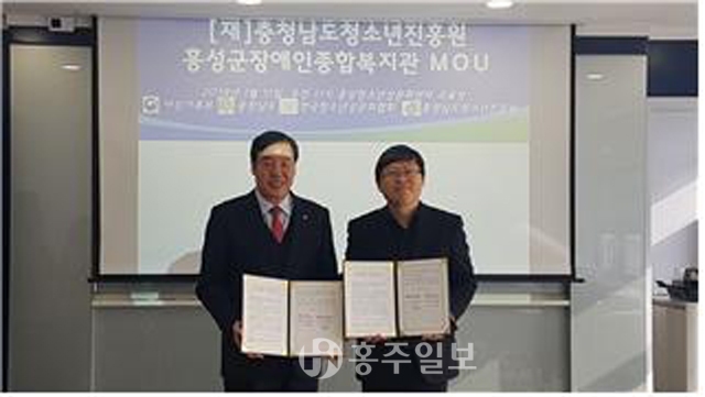 홍성군장애인종합복지관(관장 복천규)은 지난 11일 홍성군청소년성문화센터에서 충청남도청소년진흥원(원장 장기수)과 업무협약을 체결했다. 양측은 홍성군 장애아동·청소년들의 건강한 삶을 위해 협력과 장애인복지 향상을 위해 노력하기로 다짐했다. 저작권자 © 홍주일보 무단전재 및 재배포 금지 홍주일보 다른기사 보기 페이스북 카카오톡 URL복사 기사공유하기