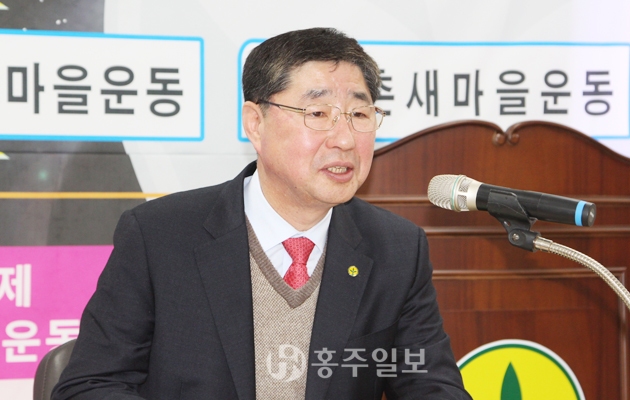 이 날 정기총회는 지난해 사업을 결산한 후 회장선임 순서로 진행됐는데, 선거관리위원장을 맡은 이병환 홍성군새마을지도자협의회장은 “지난 1월 19~25일 회장후보 등록기간에 김봉원 전임회장 한 사람만 등록했다”며 단독후보를 내게 된 배경을 설명했다. 이어서 김봉원 회장후보가 “3년 임기를 마치고 회장직에 사임한 후 더 좋은 분을 모시려고 했으나 아무도 없어서 연임하기로 결심하고 후보등록을 했다”며 “홍성군새마을회를 위해 보탬이 되도록 더욱 노력하겠다”고 지지를 호소했다.
