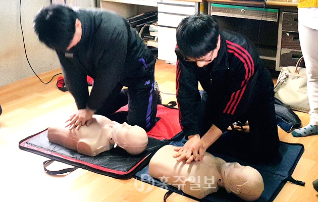홍성군은 지난달 22일 도로보수원 대기실에서 2018년 도로보수원 및 건설장비 운전자에 대해 안전교육을 실시했다. 중앙EFR교육센터의 전문 강사를 초빙해 응급조치인 심폐소생술, 하임리히요법(복부밀어내기)과 상황별 대처요령 등을 집중 교육했다. 저작권자 © 홍주일보 무단전재 및 재배포 금지 홍주일보 다른기사 보기 페이스북 카카오톡 URL복사 기사공유하기
