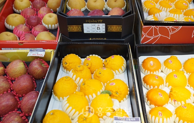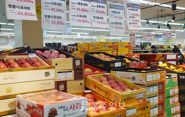 설 명절을 앞두고 홍성농협하나로마트 매장 안이 분주하다. 매장 곳곳에 선물박스들이 진열되고 소비자들은 가격과 품질을 비교해보며 고민한다. 지난달 17일 개정된 김영란법 시행령 개정안이 적용되면서 하나로마트에서도 다양한 가격대의 선물이 준비됐다.