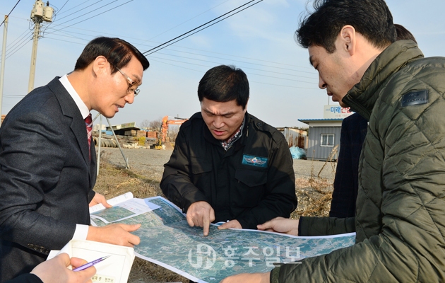 새해 초 취임한 이용록 홍성군 부군수가 지난 19일 9개 주요 사업장 현장점검을 실시했다. 이 날 이 부군수는 △농어촌마을 재구조화사업(홍양저수지) △평택~부여~익산 간 서부내륙 민자 고속도로 동홍성IC 설치사업(장곡 천태리) △오누이권역단위종합정비사업(장곡 도산리) △장항선 개량 2단계 건설사업(광천 신진리) △홍성호 명소화 사업(서부 신리) △공무원 휴양·연수단지(서부 신리) △남당항 진입도로(국도40호) 건설사업(서부 신리) △서부면 어사리 공영주차장 조성사업(서부 어사리) △농어촌도로 갈산212호 확포장사업(갈산 오두리) 현장 등 홍성군이 역점을 두고 시행하고 있는 사업 현장 위주로 방문했다.