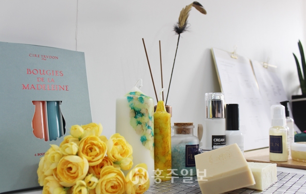 지난 2015년에 문을 연 공방은 아로마 캔들, 디퓨저, 비누, 천연화장품 등을 배울 수도 있으며 상품으로 만들어 판매하기도 한다. 전 대표는 “원래 수업만 하려고 했는데 문의가 많아지면서 판매도 시작하고 공방도 열게 되었어요. 그리고 오시는 분들에게 좀 더 많은 정보를 제공하고 싶은 마음이거든요”라고 말한다. 전 대표는 학교, 경찰청, 의료원, 어린이집, 주간보호시설 등 다양한 기관들에서 수업을 하고 있고 서산이나 태안 등에서도 손 대표에게 아로마 캔들과 천연화장품 만드는 방법 등에 대해 공부하러 오는 사람들이 많다.