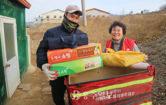 이계연 홍성우체국장은 “설 명절 외롭고 어려운 우리 주변의 이웃들이 행복한 명절을 보내시길 바란다”며 “앞으로도 복지사각지대에 있는 소외계층을 위해 다양한 지원활동을 펼쳐나가 함께 하면 행복한 세상을 만들겠다”고 말했다.