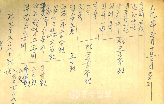 한편 1965년부터 기록되어온 당제 물목기(物目記)는 중요한 역사적 자료가 되고 있다. 지난 1999년 물목기를 살펴보면 백미 50kg 9만 5000원, 새우젓, 명태 3만 9000원, 잡곡 6000원, 무당 수고비 25만 원, 자동차 사용료 3만 원 등 모든 경비들이 상세하게 기록되어 있다. 수룡동 김관진 이장은 “아마 마을에 이런 자료들을 가지고 있는 마을이 흔하지 않을 것이다”라며 “잘 보존해 후세에도 우리 마을 기록이 영원히 남게 되기를 기대한다”고 말했다.