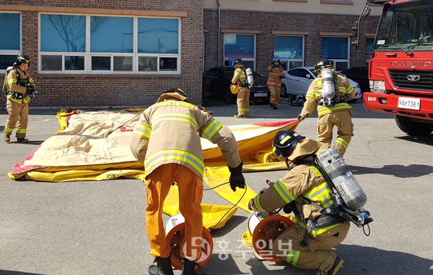 주요 훈련내용은 △소방차 출동로 및 현장 부서 선정 위치 확보 △환자 대피 유도 △건축물 구조 파악 및 소방시설을 활용한 대응능력 향상 △사다리차 및 공기안전매트 전개 △화재진압 및 인명구조에 따른 문제점 분석 △구조대 등 피난시설 점검 등이 실시됐다.