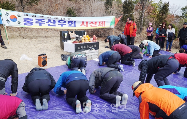 재경홍성군민회(회장 복봉규) 산하 홍주산우회(회장 복문순·명예회장 신두호)가 지난 4일, 3월 첫 주말을 맞아 관광버스 3대로 나눠 탑승, 고향에 내려와 백월산에서 시산제를 지냈다. 이 날 따뜻한 날씨 속에 지역주민과 함께 200여 명이 산행에 참여했다. 저작권자 © 홍주일보 무단전재 및 재배포 금지 홍주일보 다른기사 보기 페이스북 카카오톡 URL복사 기사공유하기