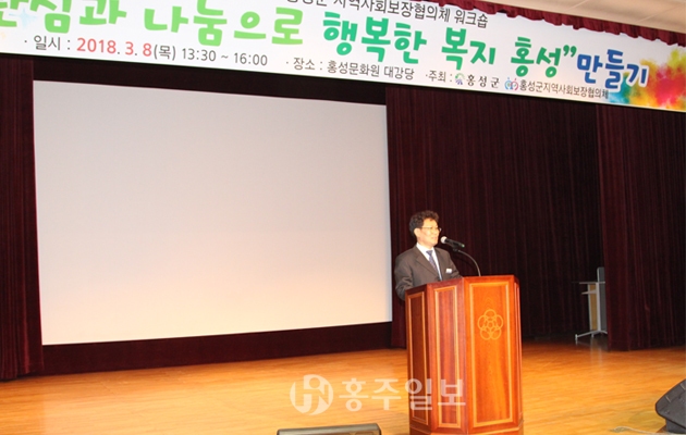 공동협의회장 김석환 군수는 인사말을 통해 “‘관심과 나눔으로 행복한 복지 홍성 만들기’를 위한 워크숍을 갖게 된데 대해 뜻 깊게 생각한다”며 “여러분의 노력으로 복지사각지대를 해소하고 따뜻한 사회가 되도록 적극적인 활동을 기대한다”고 격려했다.