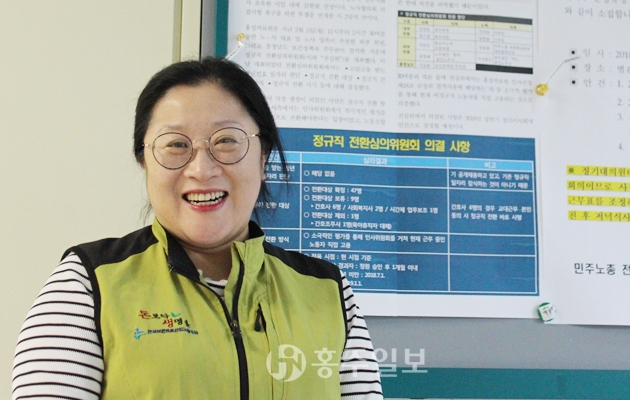 “예전에는 성과를 많이 올려야 한다고 생각했지만 지금은 과정이 중요하다고 생각한다. 현장 노동자의 힘이 커져야 조합원들이 스스로 참여하며 보람을 느끼는 그 순간들이 나에게는 가장 보람 있는 순간이다.” 7~80년대 봇물처럼 터진 노동조합 운동이 현재는 그 세력이 많이 약해졌다고 혹자는 말한다. 그러나 아직도 현장에서는 노동조합의 필요성이 그 어느 때보다 강력하게 요구되고 있다. 비정규직의 양산, 최저임금에 달하지 못하는 시급을 받고 일하는 노동자들, 열악한 환경에서 근무하는 일용직 노동자 등 우리의 시선이 채 미치지 못하는 현장에서 일하는 노동자들이 산재해 있다.