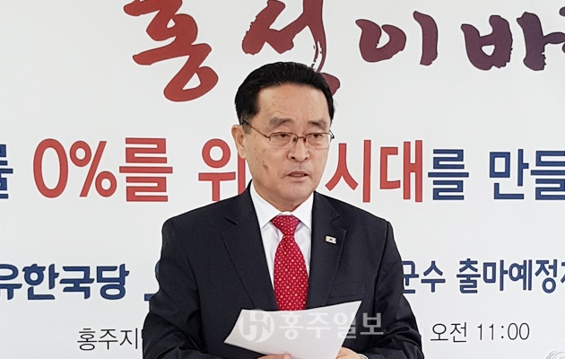 군수 출마를 준비하고 있는 자유한국당의 오석범 예비후보가 지난 16일 홍주지명되찾기운동본부 회의실에서 기자회견을 갖고 김석환 군수에게 “4년 전 3선에 불출마하기로 한 약속을 지켜야 한다”고 지적했다. 오 예비후보는 지난 12일 김 군수를 만나 면담한 내용을 밝히며 “4년 전 군민과 나한테 이번 한 번만 할테니 선거대책본부장을 맡아 달라는 부탁을 받고 최선을 다해 당선시켜줬다. 이제 그 약속을 지켜야 한다고 요구했다”고 전했다.