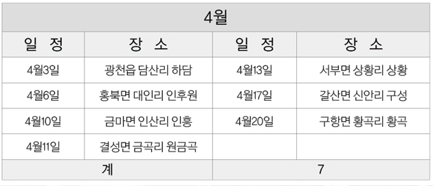 또한 평소 농기계 보관·관리 요령과 귀농자 및 여성 농업인들을 위한 농기계 운전·정비 요령 등의 교육도 실시해 초보 농군들의 정착에 많은 도움을 줄 것으로 기대하고 있다. 이 밖에도 홍성군 조례에 의거해 2만 원 미만의 농기계 수리 부품은 무상으로 공급하고 그 이상의 부품도 농업인은 실비만 부담하도록 하며 농가 경영비 절감에도 도움을 줄 예정이다. 군 관계자는 “작년에 892명의 농업인에게 교육을 실시해 반응이 좋았다”며 “올해도 농기계 수리가 적시에 이뤄질 수 있도록 농업인들의 적극적인 참여를 바란다”고 말했다.