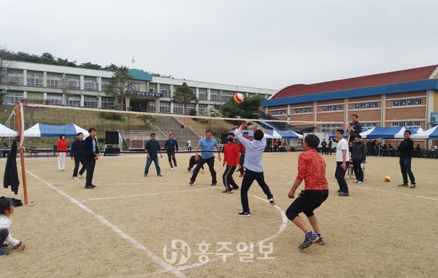 홍동중학교(교장 김선호) 반딧불 장학회장 이·취임식 및 제25차 동문화합체육대회가 지난 1일 홍동중학교 운동장에서 열렸다. <사진>