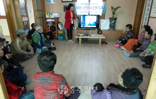 대한노인회 홍성군지회(지회장 조화원) 경로당프로그램관리부에서는 노인인권 및 웰다잉교육을 실시하고 있다.<사진>