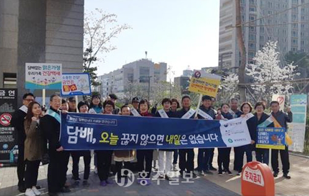군 보건소는 지난 10일 오전 출근시간대 경남아파트 아파트 입구에서 ‘금연은 나와 이웃사랑의 시작’이란 표어로 금연문화 캠페인을 실시했다. 이 날 행사에는 홍성군보건소와 경남아너스빌 관리사무소 직원, 아파트 주민들이 함께 참여했다. 저작권자 © 홍주일보 무단전재 및 재배포 금지 홍주일보 다른기사 보기 페이스북 카카오톡 URL복사 기사공유하기