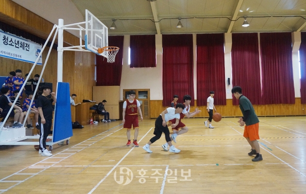 제2회 필락(feel-樂)청소년축제의 일환으로 지난 7일 광천고등학교 강당에서 군내 중학생을 대상으로 농구대회가 열렸다.<사진>