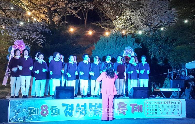 결성면 좌우촌 마을(이장 장선호)은 지난 12일 제8회 결성 벚꽃축제를 열고 100년 노송과 어우러져 화려한 벚꽃의 향연이 펼쳐지는 석당산 자락에서 면민의 화합과 결속을 다졌다.<사진>