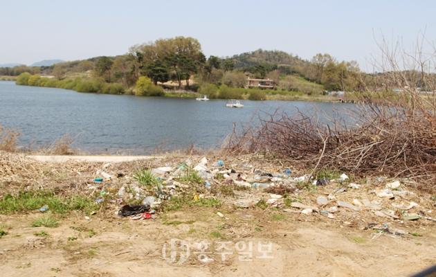 홍동면 홍양저수지 주변에 빈 페트병과 비닐봉지 등 각종 오물이 버려져 눈살을 찌푸리게 한다. 날로 녹음이 짙어가는 풍경이 위안을 주지만 행락객들이 함부로 버리는 쓰레기로 아름다운 강산이 병들고 있다. 저작권자 © 홍주일보 무단전재 및 재배포 금지 허성수 기자 다른기사 보기 페이스북 카카오톡 URL복사 기사공유하기