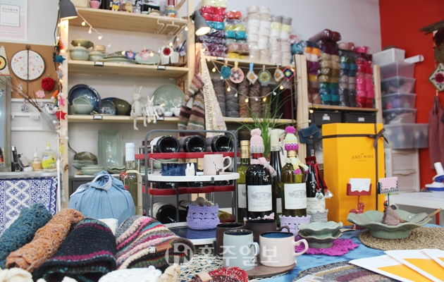 “가게 열고 식구들한테 욕도 많이 얻어먹었다. 돈도 안 되는데 그러고 있다고. 하지만 가게 운영비로 들어가는 돈이 내가 사회활동을 하는 경비라고 생각한다. 내가 더 나은 단계로 이동하는 발전단계다. 그래도 이제는 밥 갖다 주는 동생도 생기고 장날에 바로 앞에서 생선 파는 언니가 먹으라고 쭈꾸미도 데쳐준다.” 안시아뜰리에 공방에는 최 대표의 감각적인 뜨개 작품들과 다채로운 색감의 실, 작가들의 도자기 그릇들, 그리고 안시 와인을 판매한다. 안시와인은 최 대표의 동생이 대기업유통과정을 거치지 않고 프랑스 안시지역에서 직접 유통해 판매되는 와인이다.