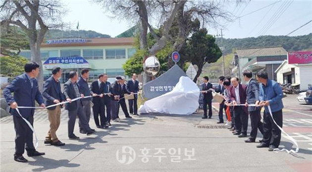 결성면행정복지센터(면장 안기억)는 지난 20일 행정복지센터 체제 출범에 따라 면사무소 간판을 교체하는 현판 및 표석 제막식을 가졌다. <사진>