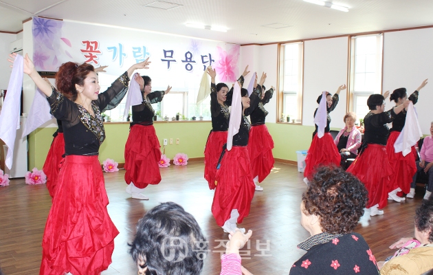 한국무용동호회 꽃가람 무용단(단장 이연자)이 지난 20일 실버스쿨주야간보호센터 어르신들에게 춤 자원봉사를 실시해 어르신들에게 따뜻한 웃음을 전달했다. <사진>