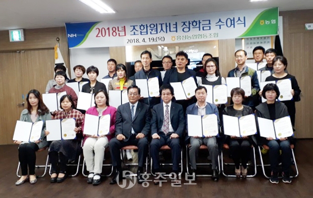 홍성농협(조합장 정해명)은 지난달 19일 회의실에서 조합원 자녀에게 장학금을 전달했다. <사진> 홍성농협은 조합원 가입일이 2012년 말 이전에 가입하고 2017년 말 이용고배당금 10만 원 이상을 수령하고 납입출자금 잔액이 200만 원 이상 출자한 조합원을 기준으로 선발해 장학금을 지급했다.