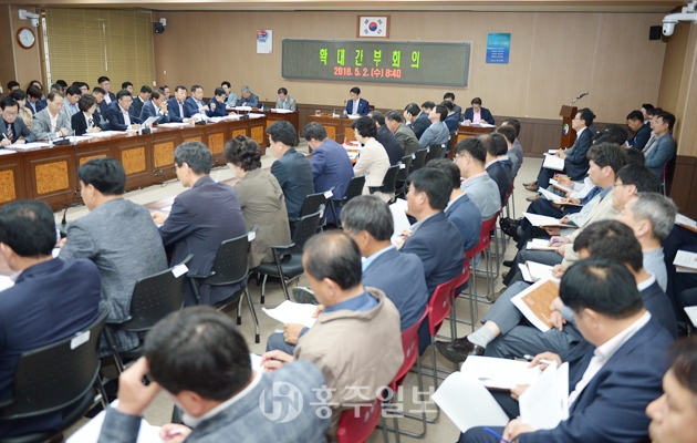 이용록 군수 권한대행은 지난 2일 군청 회의실에서 확대간부회의를 갖고 신속집행을 비롯한 선거사무추진 등 현안업무의 철저한 추진을 당부했다. 또 행정의 연속성을 강조하며 권한대행체제에 따른 행정누수가 없도록 부서장 책임 하에 단위업무별 로드맵에 따라 빈틈없는 업무 추진과 친절하고 적극적인 행정 처리를 당부했다.