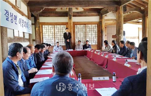 결성면행정복지센터(면장 안기억)는 지난달 25일 결성동헌에서 4월 중 이장회의를 개최했다.<사진> 결성면의 대표 문화재인 결성동헌은 조선시대 지방수령 현감이 행정업무를 수행하던 관청의 주된 건물이다.